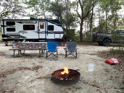 While the Rainbow River was undoubtedly the highlight of our trip, we also enjoyed exploring the Pruitt Trail, which offered an interesting and scenic 3-mile hike This hike takes you along ridgelines shaped by canal construction in the 1960s, offering some gentle ascents and descents. The trail weaves through lush pine forests, wetlands, and hardwood hammocks, with ancient oaks towering overhead. Their gnarled branches, draped in Spanish moss, create a canopy that feels both peaceful and otherworldly. The combination of tranquility and proximity to Rainbow Springs makes the Pruitt Trail a must-see for anyone camping in the area. For more information, check out Florida Hikes' website.